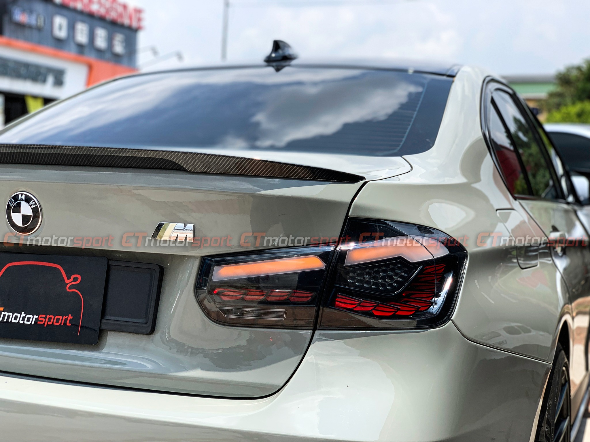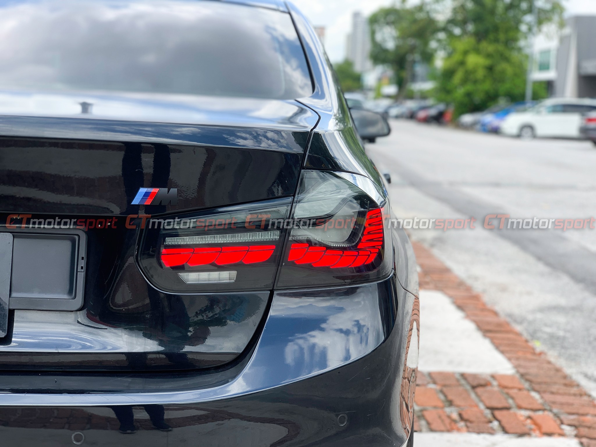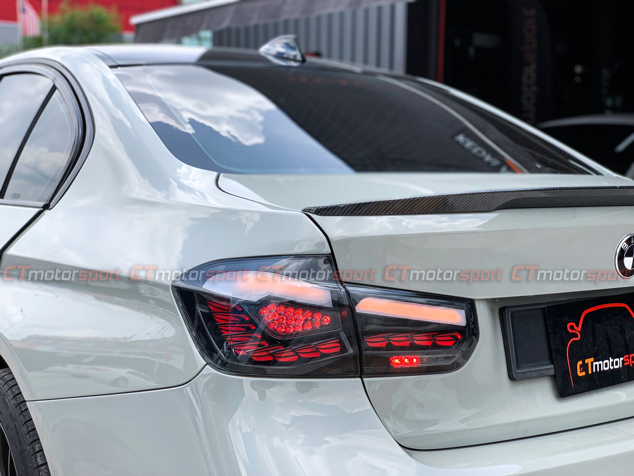 BMW F30 3 Series Installed Smoked Dragon Scale Rear Tail Lamp