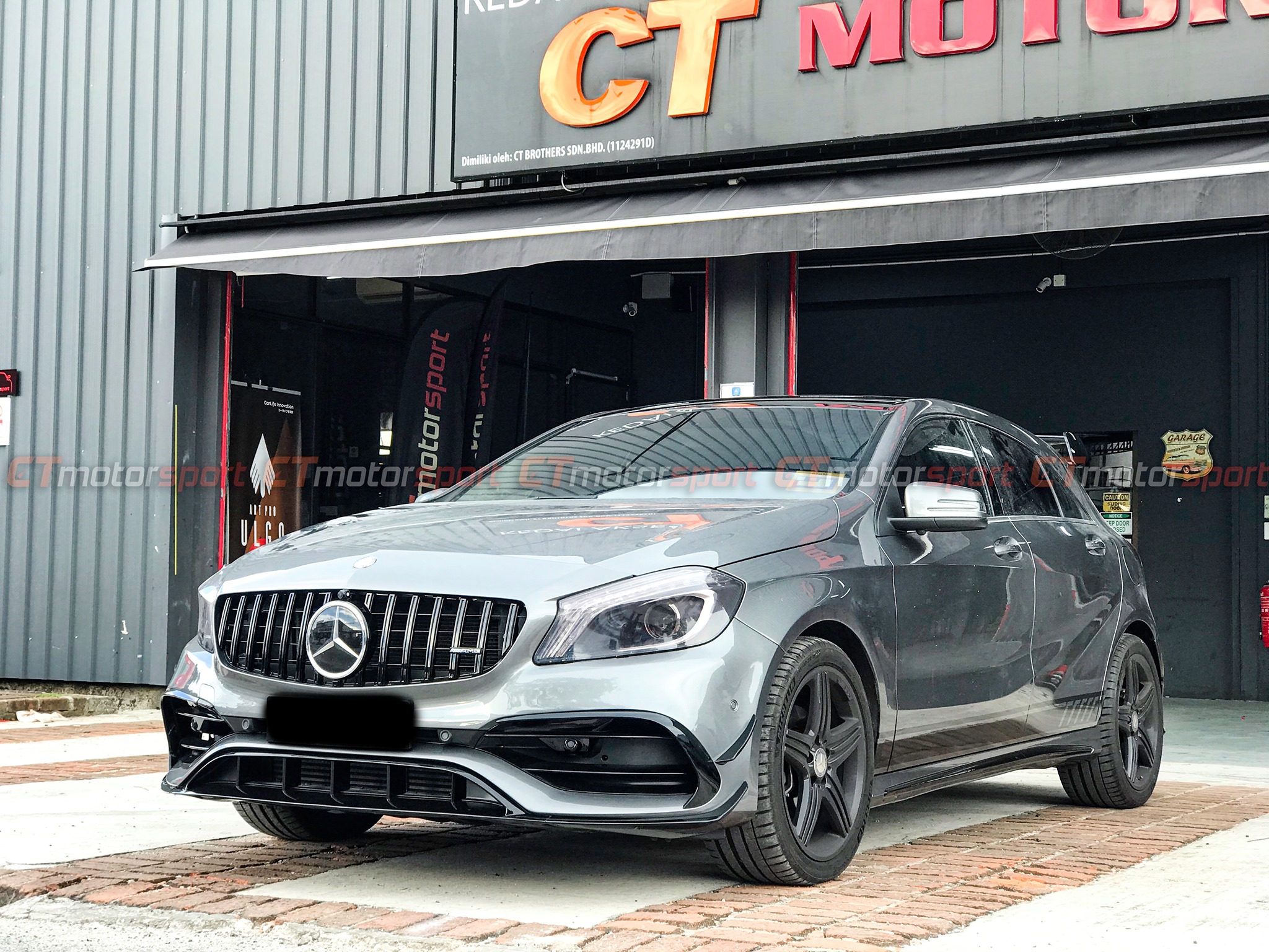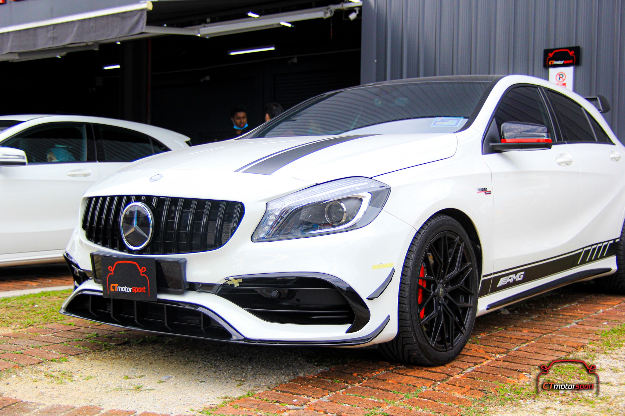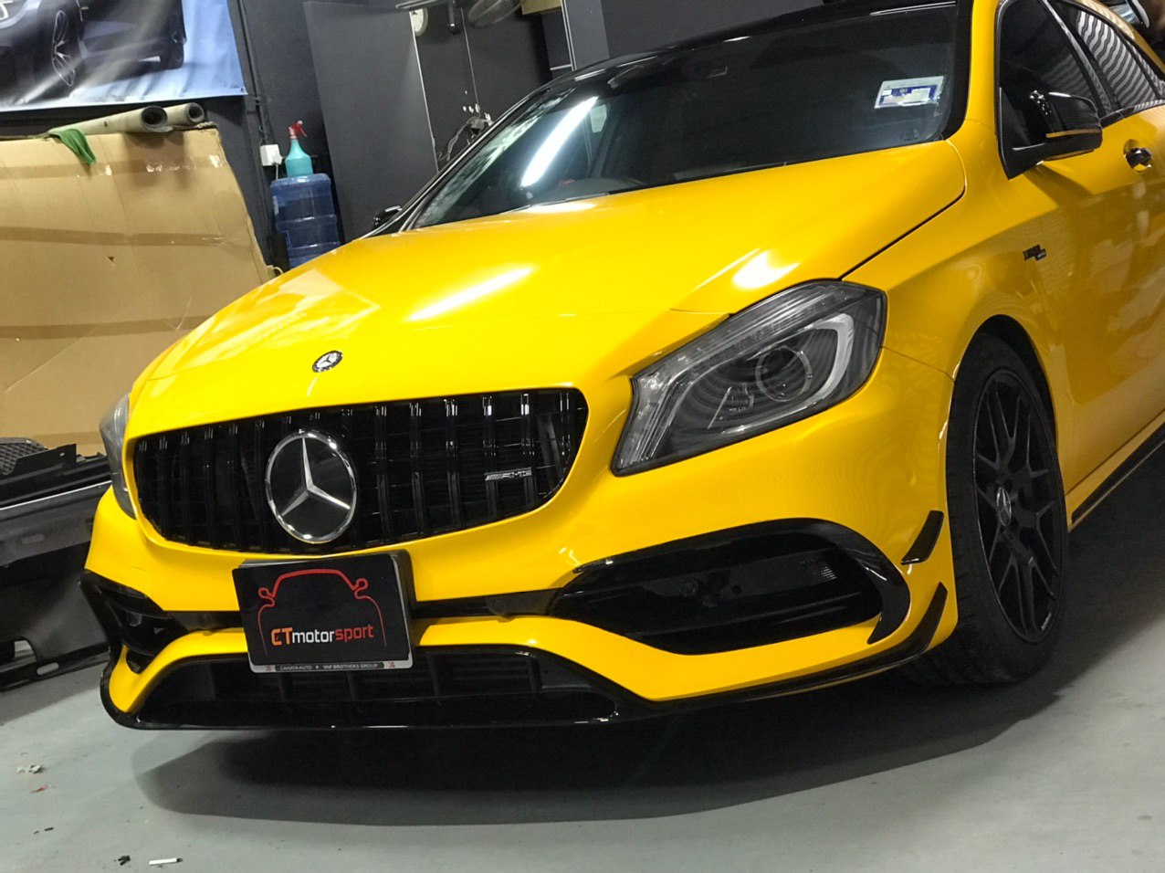 Mercedes A200 A250 A45 W176 Installed A45 Style Front Lip Canard Kit