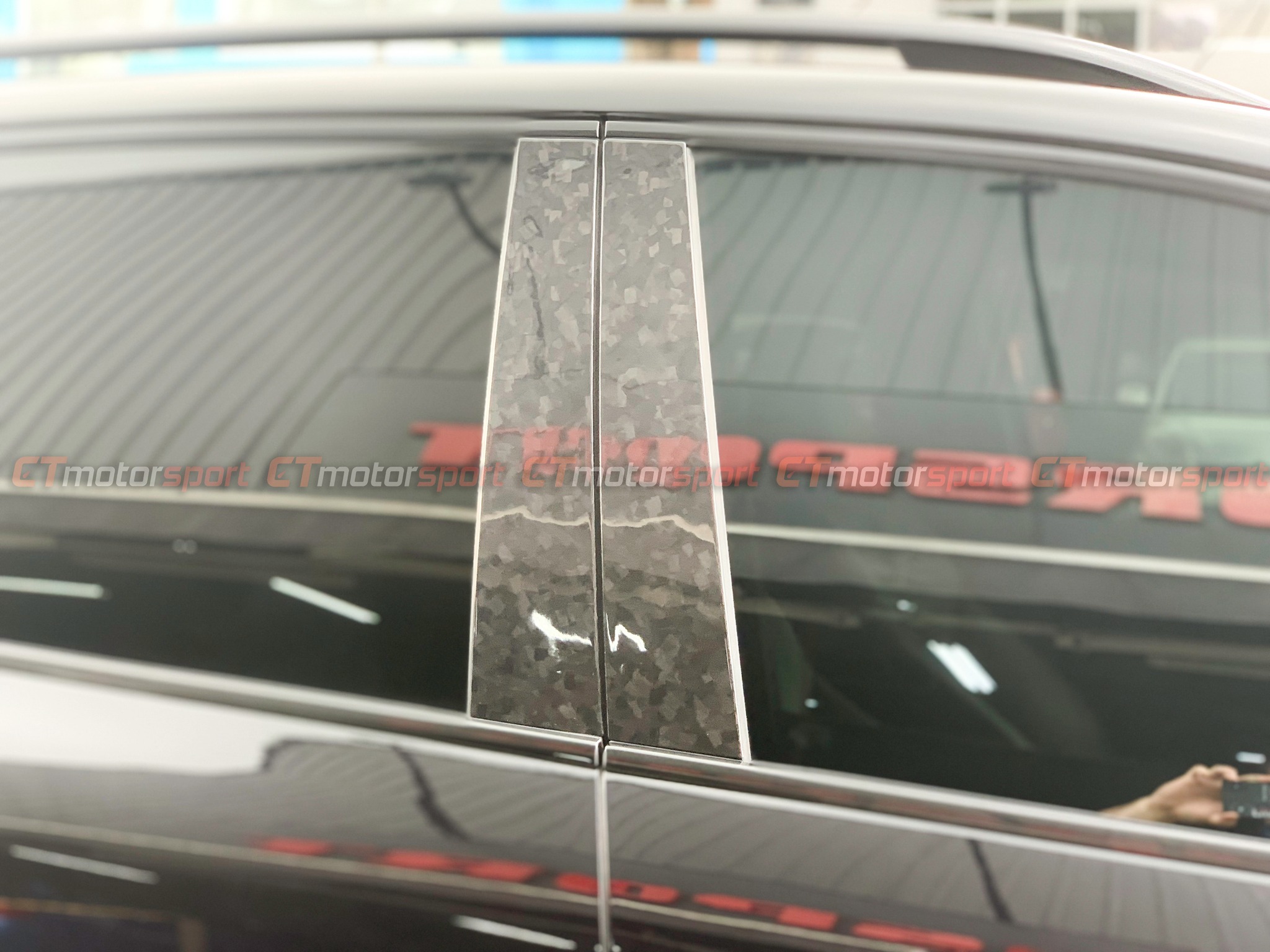 PORSCHE CAYENNE INSTALLED FORGED CARBON DOOR PILLAR TRIM